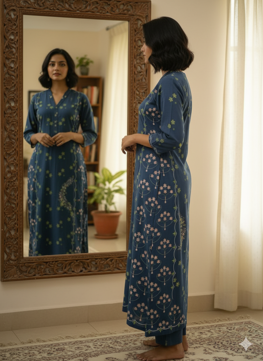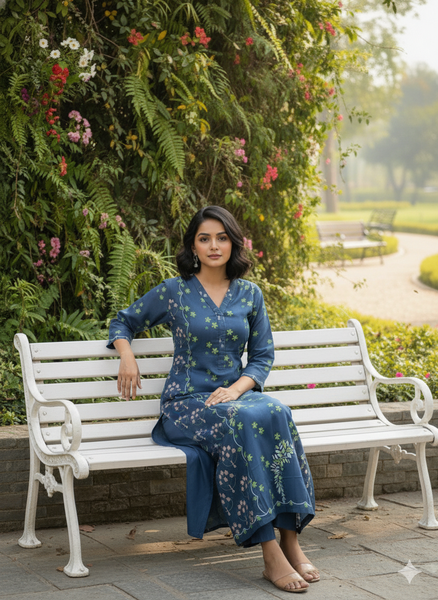 This 2 piece printed-colored co-ord set features luxurious and comfortable fabric and impeccable cuts given to every detail of the article, offering versatility and sophistication for any occasion.