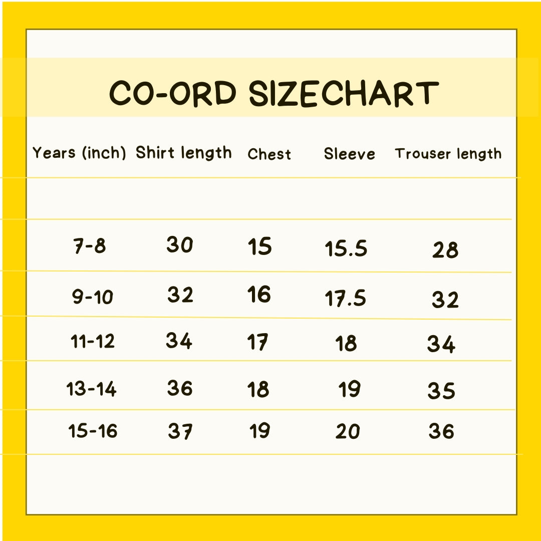 A kids' co-ord set is a matching outfit, typically a top and bottom, designed for style and convenience. Featuring fun designs and comfortable fabrics, they’re perfect for outings, and everyday wear.