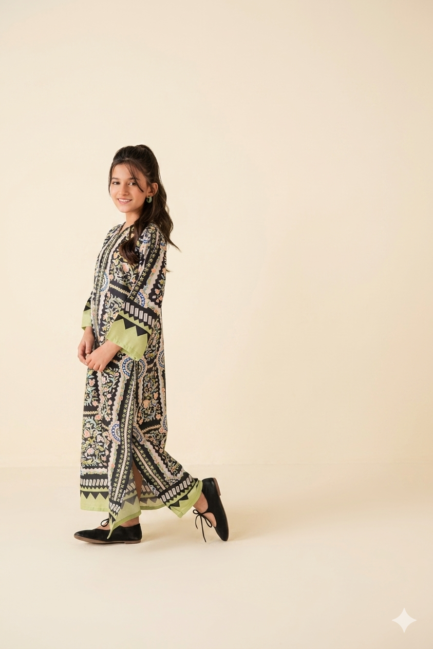 Adorn your little one in our poly lawn digital print Kaftan ,mirroring luxury and elegance .This delightful piece features a soft comfortable fabric .Perfect for creating perfect ,stylish moments. the length of the kaftan will vary with age and wont be according to the size chart given you can also mention the length of the kaftan in notes your self