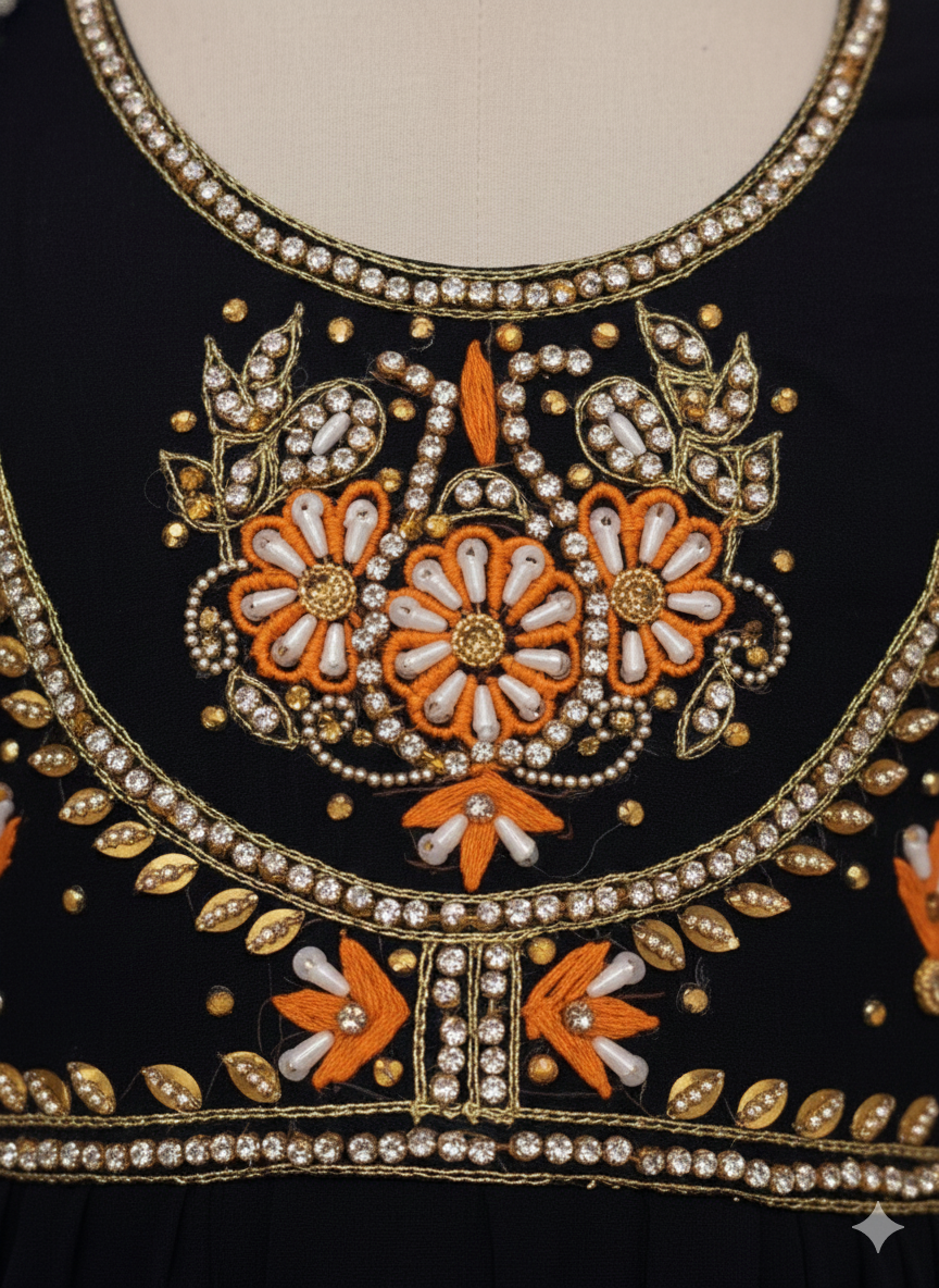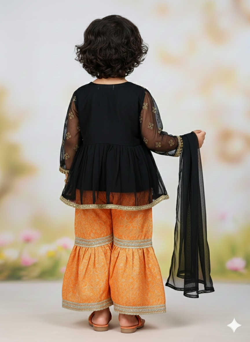 Premium Shiffon adorned with exquisite hand work Banarsi Style embroided gharara is a testament to craftsmanship.