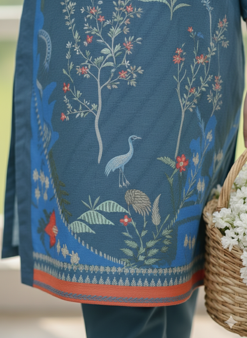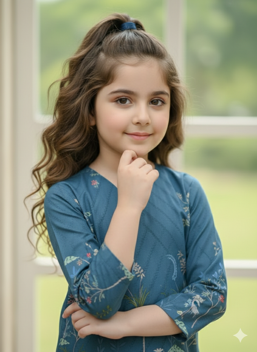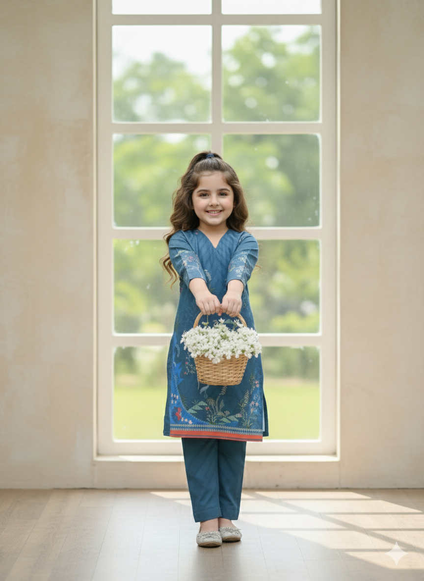 Refresh your summer wardrobe with this charming two-piece poly lawn ensemble. The pristine blue tunic features a delightful digital print with vibrant accents, perfectly complementing the matching printed trousers. Crafted from breathable lawn fabric, this stylish and comfortable outfit is ideal for staying chic in warm weather.